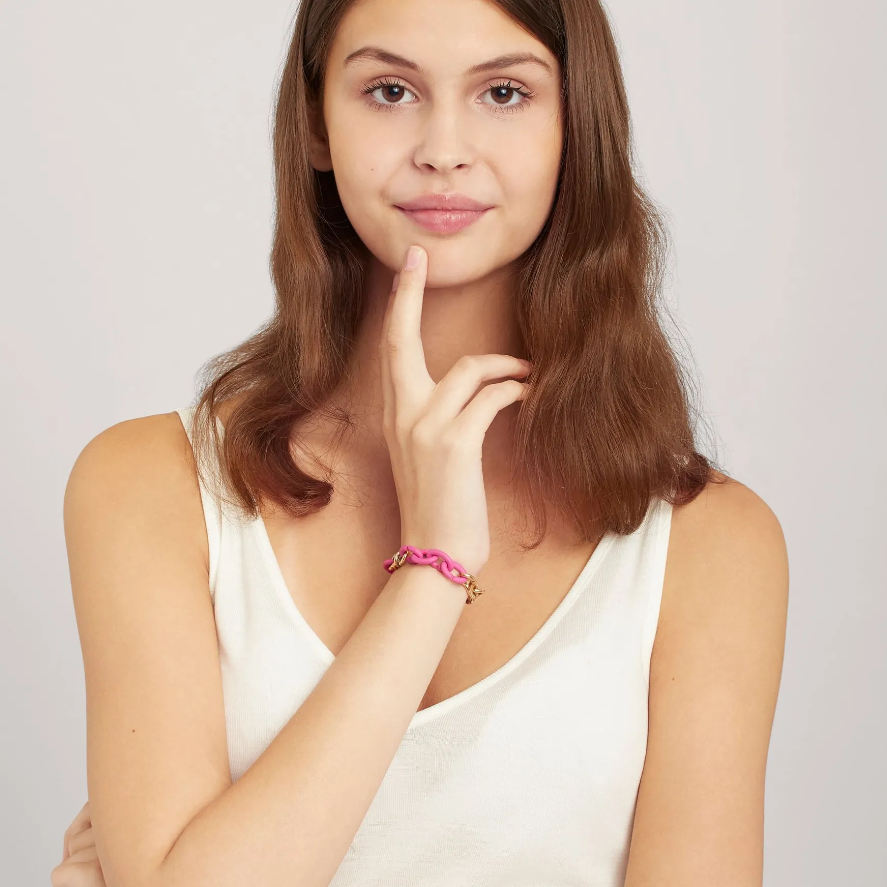 Lovers Bond bronze prettily decorated with Pink Rubber X and finished with Basic double bronze links.